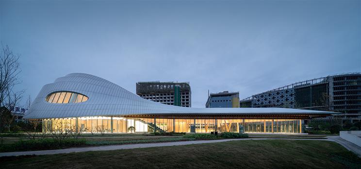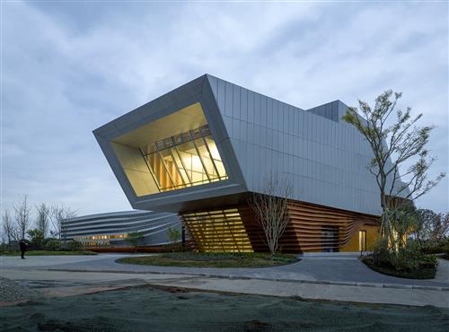 两年前的初夏,这块占地约8000平米的基地仅仅是新城环境里一片虚无与混沌的结合体。而如今,一个展厅建筑已成为象征未来主义的空间幻象,如同冲破地心引力束缚的矢量,蓄势待发。