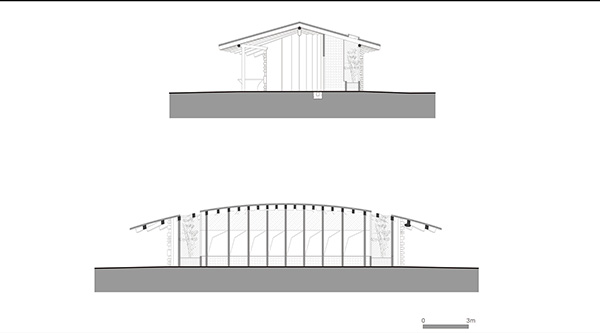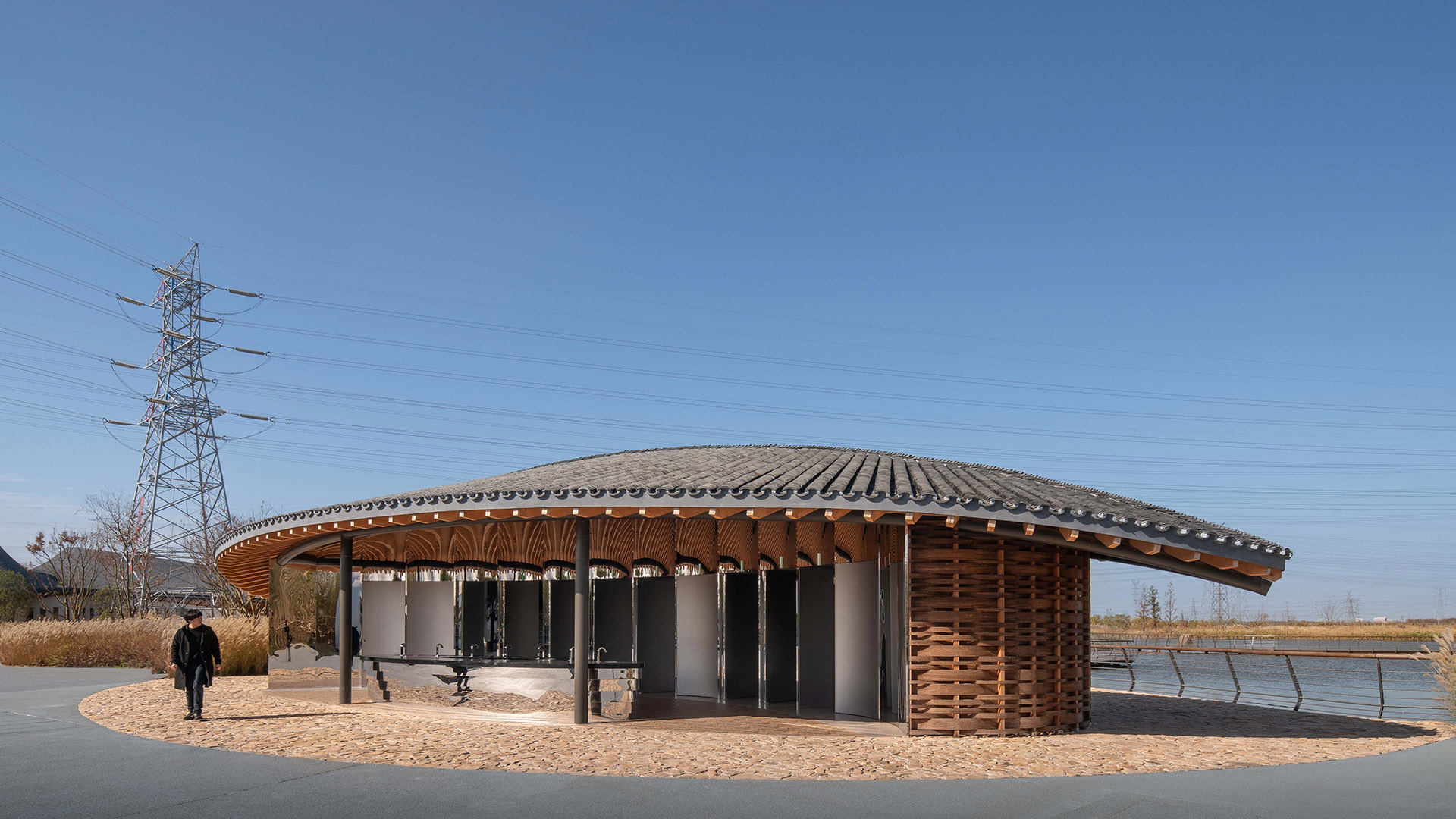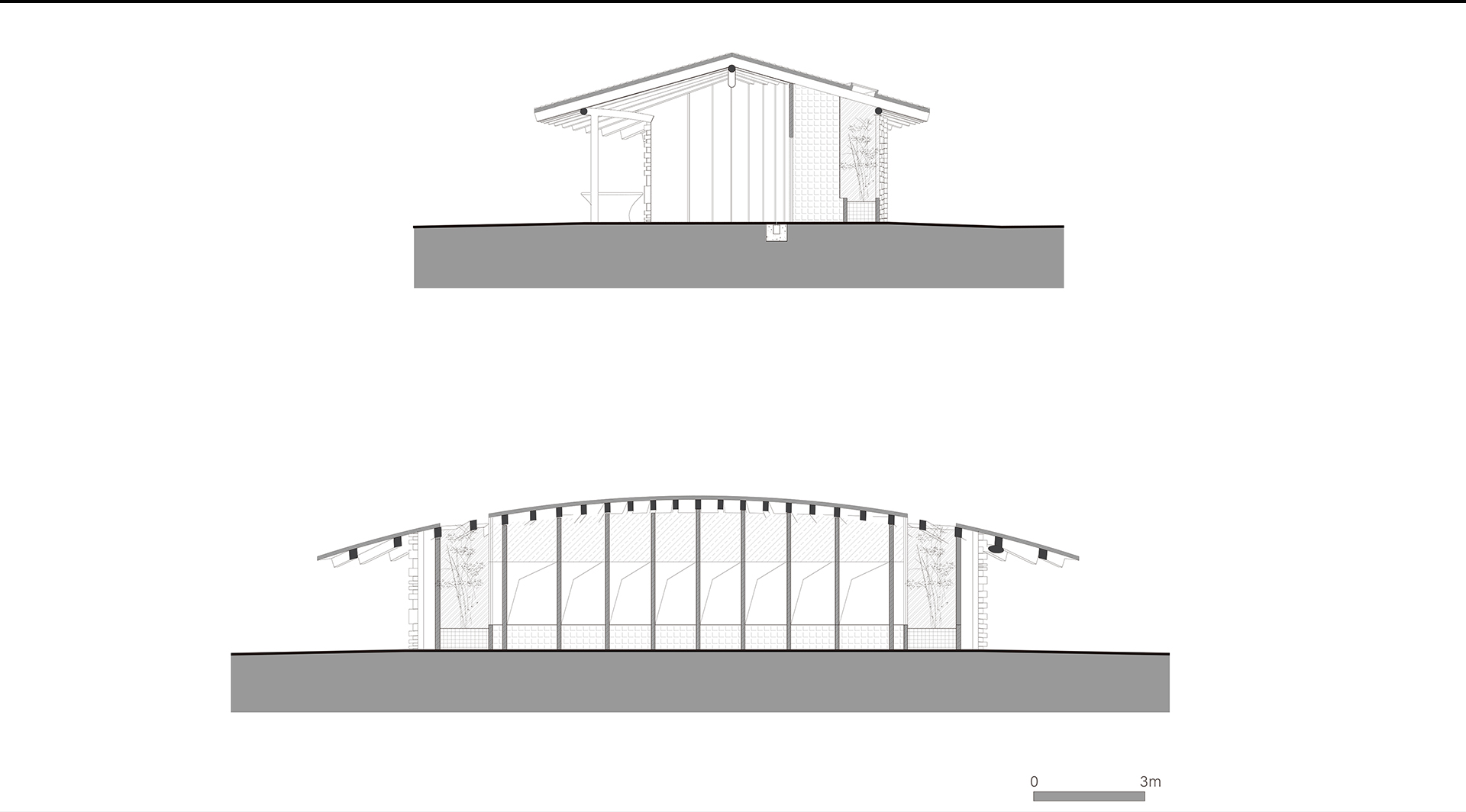 The renovation of the public toilet takes into account the overall spatial form of the entrance and hopes to reduce the physical sense of the building as much as possible. The perception of the building is that the roof is heavy and the walls are light. While the grey space formed by the public washbasin in the front area and the reflection material in the back make the heavy material roof also present the feeling of floating.