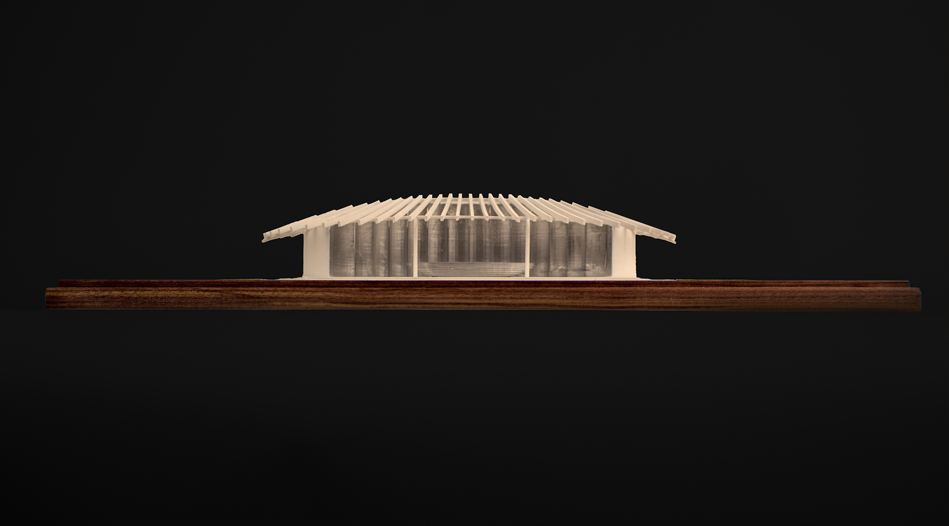 景观公厕的改造考虑整体入口空间形态,而希望尽量消减建筑本身的物质感;屋顶重而墙轻,是整个建筑希望呈现的整体感知;前区公用洗手台所形成的灰空间与后部反射材料的共同作用使得重材质的屋顶也呈现了漂浮之感。